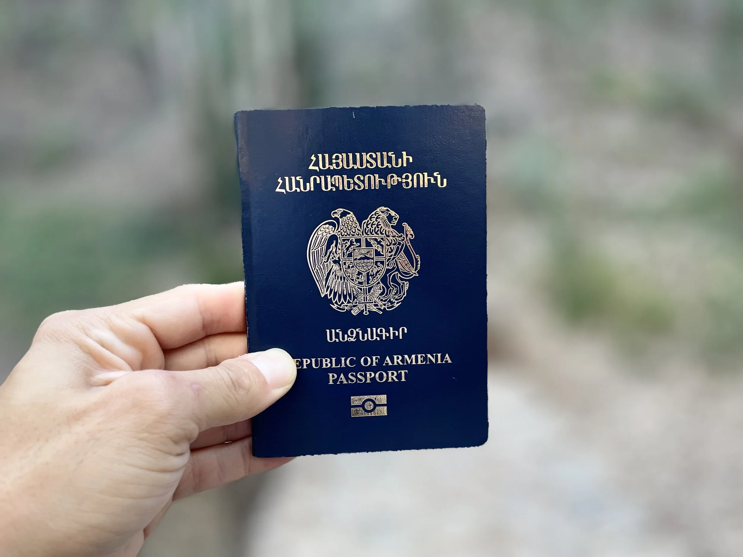 Este es un pasaporte de Armenia con el símbolo biometrico. Armenia, el país. No es un paisaporte.