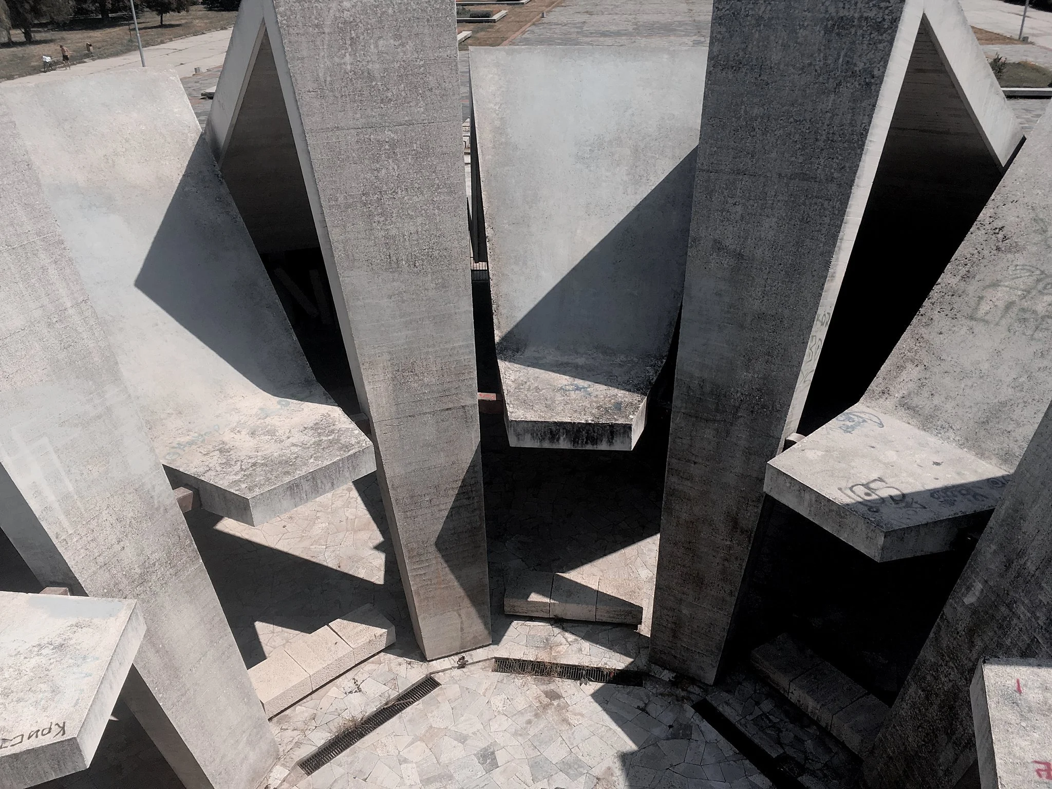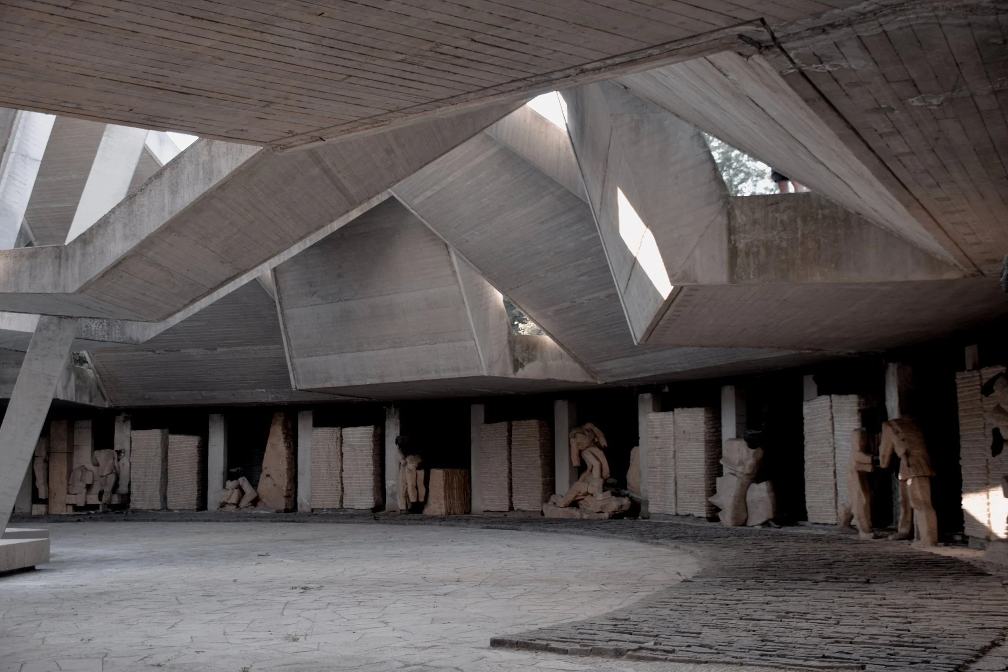 Diseñaron una especie de montaña artificial, hecha enteramente de concreto, cuyos pliegues parecen haber sido arrancados del suelo y reensamblados como una escultura colosal. Cuando uno se acerca a esos pliegues, nota que no son solo formas: se hunden en la tierra, como si el suelo hubiera estallado hacia arriba y luego vuelto a caer en el centro.